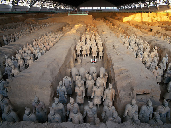 | Terracotta Warriors in Xian, known as the eighth wonder of the world, now is a museum to display the terra-cotta warriors and horses which were made in Qin Dynasty. Qin terracotta warriors have guarded the mausoleum of Qin Shi Huang for over 2000 years. In 1987, the Mausoleum of Qin Shi Huang and Terracotta Warriors were approved by UNESCO to list in the World Heritage List. The Qin Shi Huang Mausoleum is the first and largest mausoleum in China.(built from 246 BC to 208 BC).